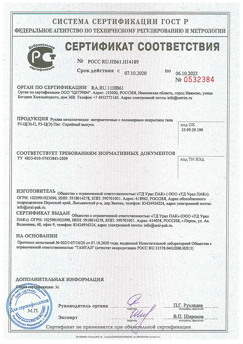 Металлорукав 20 мм РЗ-Ц-Х-20 с/з и х/б (бухта 50 м) Урал Пак купить в Кирове в компании ВИПАКС.