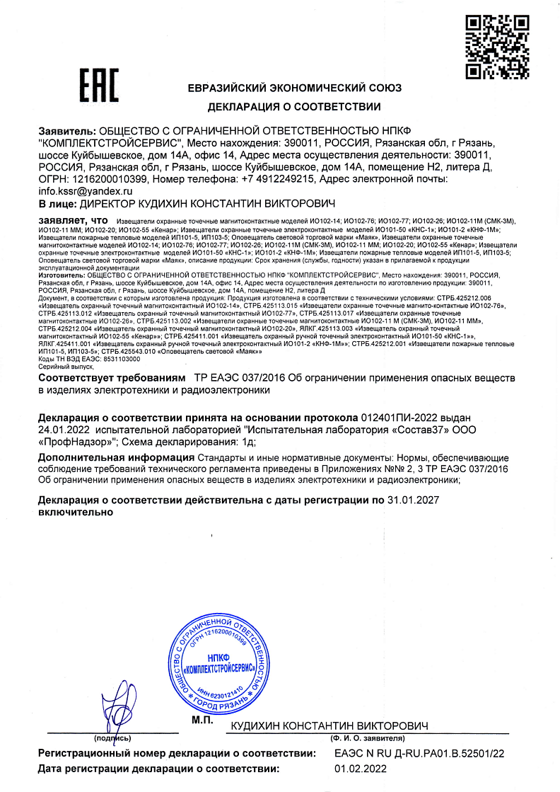 Извещатель ИО-102-14 охранный точечный магнитоконтактный Комплектстройсервис купить в Кирове в компании ВИПАКС.