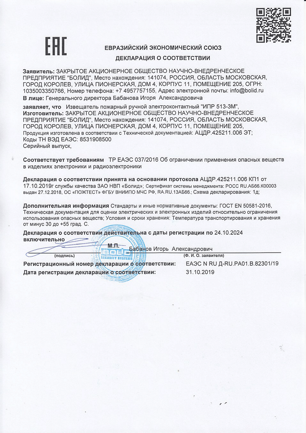 • Производитель BOLID