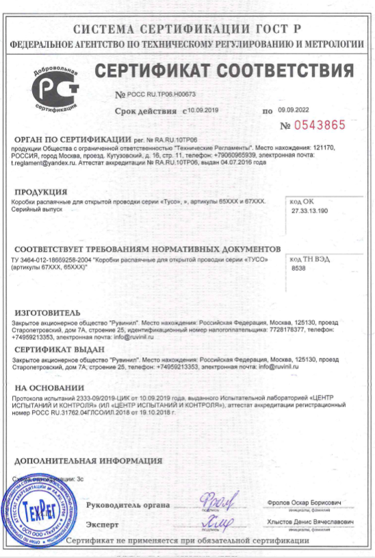 - распаячные коробки серии «Tусо» предусматривают возможность разветвления проводов с помощью безвинтовых плоскопружинных зажимов, с помощью колпачков для скрутки, СИЗов, с помощью винтовых клеммных колодок и клемм WAGO.