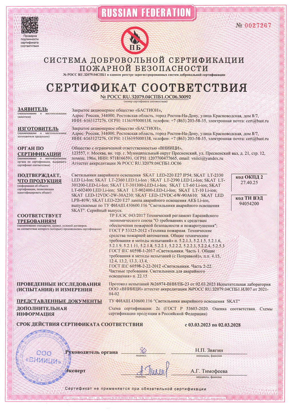 Лампа аварийного освещения SKAT LT-301300 LED Li-ion производителя Бастион - прибор, который используется для аварийного освещения при отсутствии напряжения в сети. Освещение обеспечивается 30