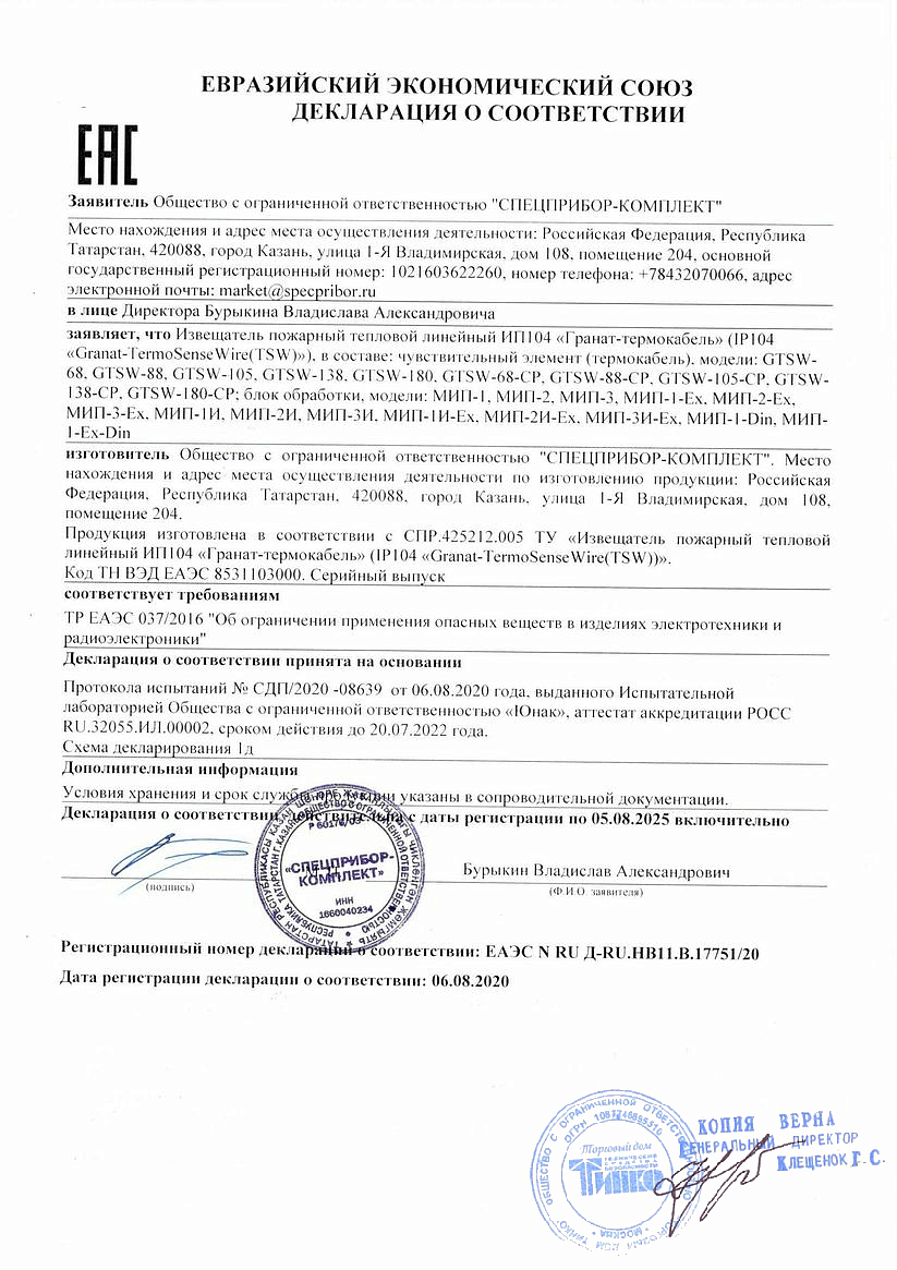 Служит для обнаружения превышения пороговой температуры как признака пожара по всей своей длине и предназначен для применения в системах пожарной сигнализации совместно с модулями «МИП» .