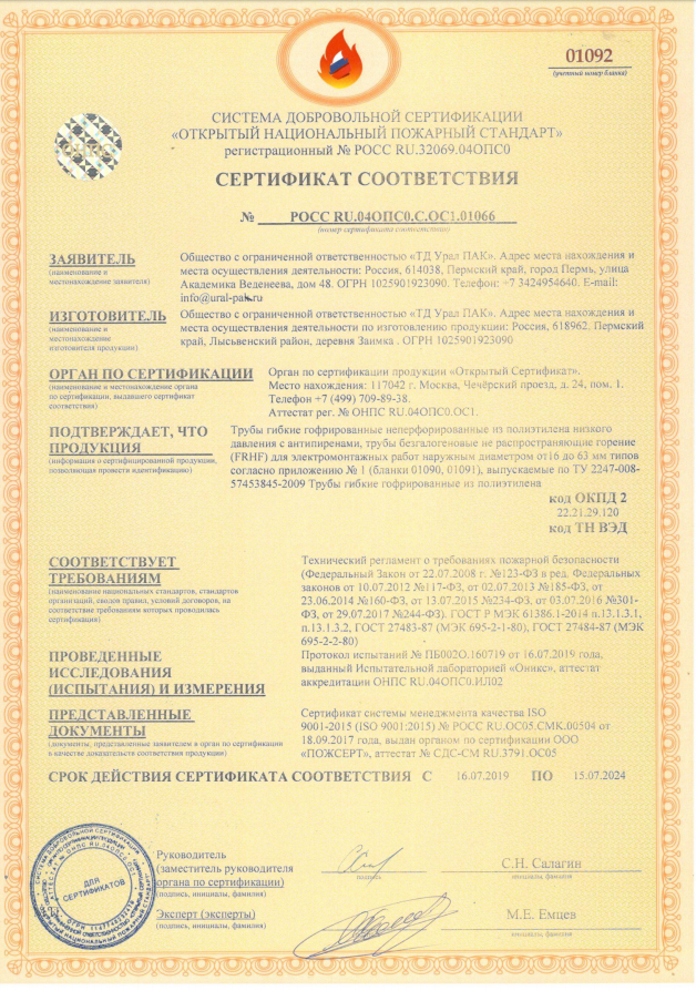 Материал ПНД (полиэтилен низкого давления) является экологически чистым и позволяет монтировать изделия, выдерживая широкий температурный диапазон без изменения механических и изоляционных свойств. Гофрированная труба из ПНД обладает устойчивостью к воздействию влаги, обладает повышенной эластичностью, что облегчает монтажные работы.