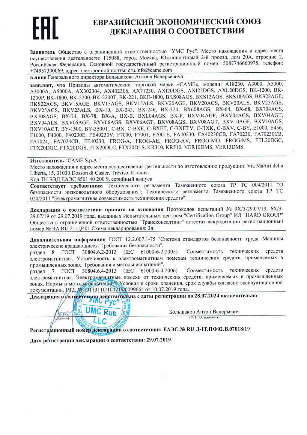 Привод ATI 001A5000A самоблокирующийся на ворота CAME