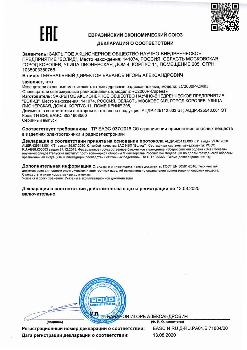 • Производитель BOLID