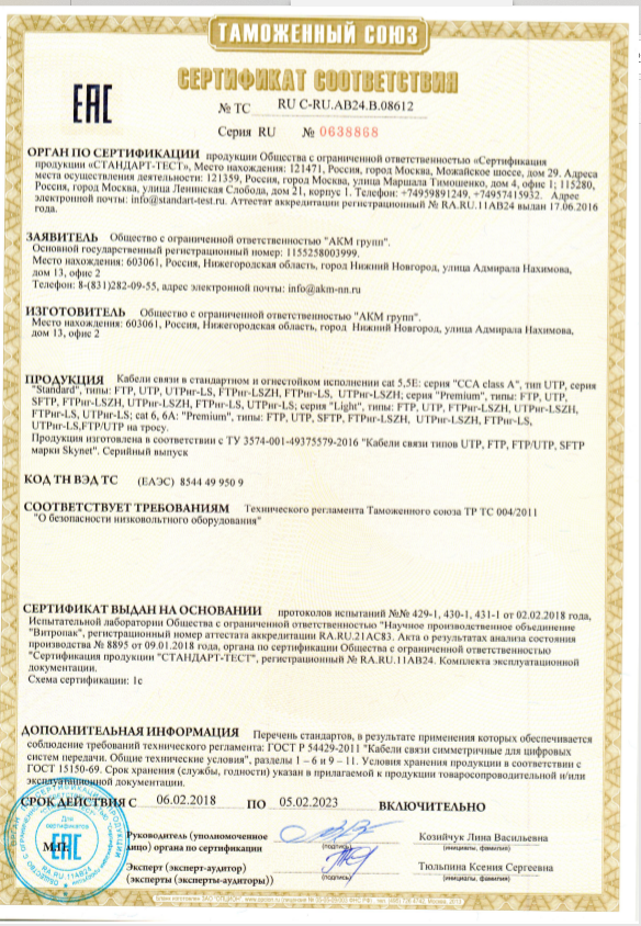 Купить в Кирове Кабель FTP 4PR 24AWG CAT5e OUTDOOR внеш Premium Skynet (4х2х0.51 Cu) (1693121) в компании ВИПАКС.