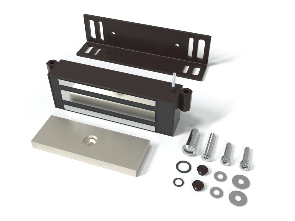Замок электромагнитный для стальных дверей со стальной рамой, сила удержания 300кг, 9-15VDC, 0,6А, 7,2 Вт, встроенный модуль перемагничивания, монтажный комплект, уголок 40х50х4мм. Корпус из стали. -40…+45°C. Цвет корпуса (CA)- медный антик, магнит: 120х48х35 мм, пластина: 125х45х11,2 мм.
